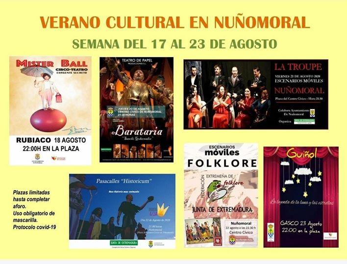 ACTIVIDADES CULTURALES PARA TODA LA FAMILIA ESTE VERANO EN NUÑOMORAL Y SUS ALQUERÍAS. 16 agosto 2020 OS DEJAMOS LA PROGRAMACIÓN DE LA SEMANA QUE VIENE. NO TE LAS PIERDAS Galería imágenes