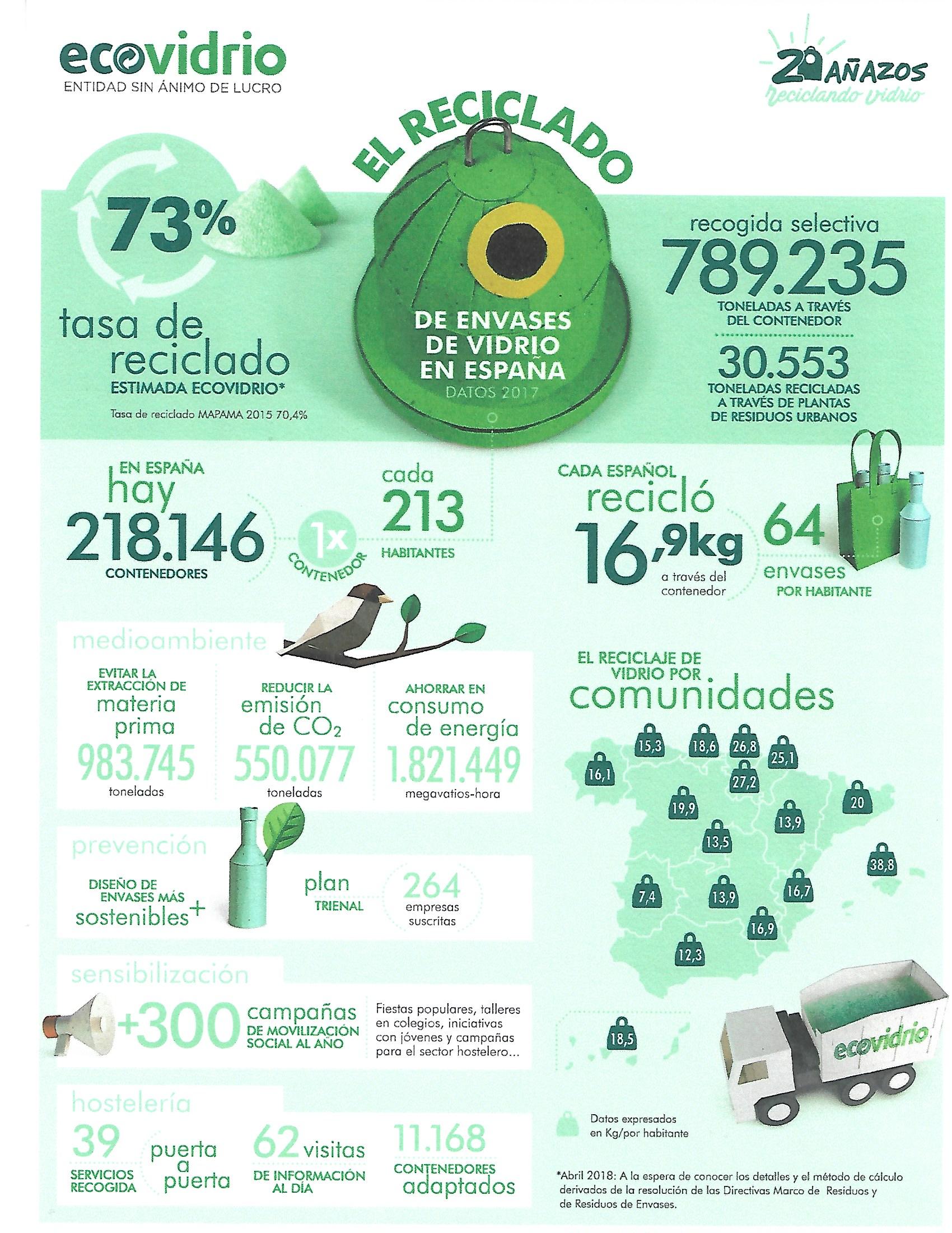 La forma ideal para reciclar vidrio, consiste en almacenar en nuestros hogares, todo tipo de tarros, botellas o envases de vidrio, para despúes depositarlos en los contenedores o iglús, de color verde.